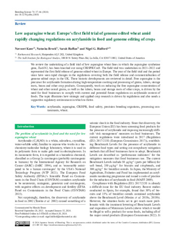 Low asparagine wheat - Europe’s first field trial of genome edited wheat amid rapidly changing regulations on acrylamide in food and genome editing of crops
