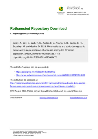 Micronutrients and socio-demographic factors were major predictors of anaemia among the Ethiopian population
