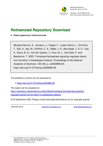 Trehalose-6-phosphate signaling regulates lateral root formation in Arabidopsis thaliana
