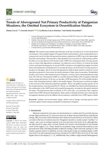 | Additional information | (This article belongs to the Special Issue Land Degradation Assessment with Earth Observation II) This study was carried out with the funding of the Consejo Nacional de Investigaciones Científicas y Técnicas (CONICET) and the Instituto Nacional de Tecnología Agropecuaria (INTA). |