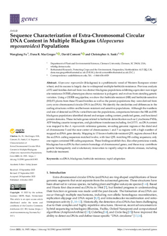Sequence Characterization of Extra-Chromosomal Circular DNA Content in Multiple Blackgrass (Alopecurus myosuroides) Populations.