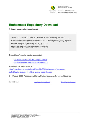 | Keywords | Agronomic biofortification, Dietary intake, Effectiveness, Fertilizers, Micronutrient deficiencies |