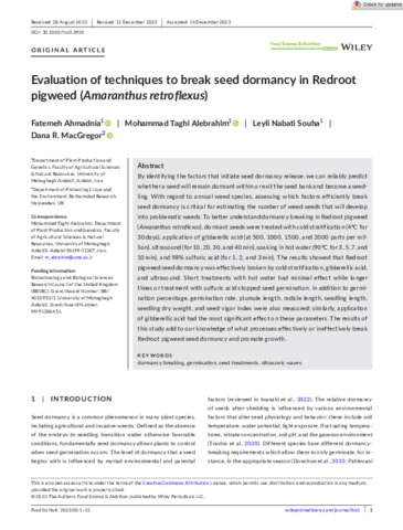 Evaluation of techniques to break seed dormancy in Redroot pigweed (Amaranthus retroflexus)