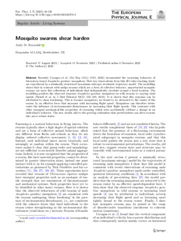 | Keywords | Mosquitoes, Swarming, Stochastic modelling |