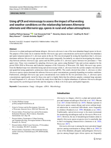 Using qPCR and microscopy to assess the impact of harvesting and weather conditions on the relationship between Alternaria alternata and Alternaria spp. spores in rural and urban atmospheres