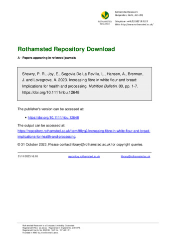 | Keywords | Dietary fibre, Health benefits, Wheat, White bread, Wholegrain |