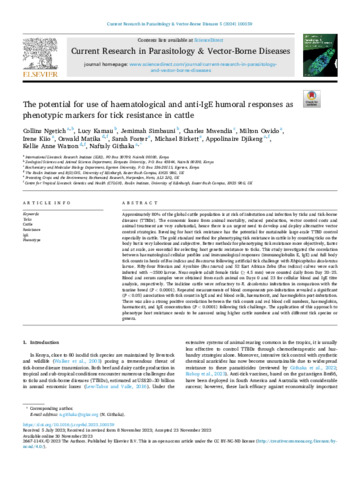 | Keywords | Ticks, Phenotype, IgE, Resistance, Cattle |