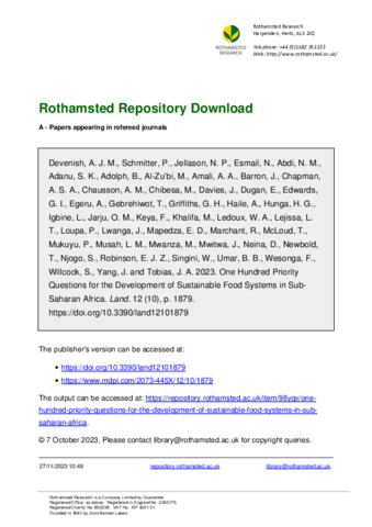 One Hundred Priority Questions for the Development of Sustainable Food Systems in Sub-Saharan Africa