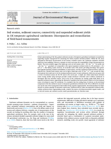 Soil erosion, sediment sources, connectivity and suspended sediment yields in UK temperate agricultural catchments Discrepancies and reconciliation of field-based measurements