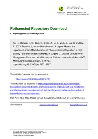 | Keywords | Barley, Mutagenesis, Salt tolerance, Microspore, Transcriptome, Metabolome |