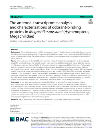 | Keywords | Megachile saussurei, Medicago sativa, Odorant-binding proteins, Transcriptome, Antennae |