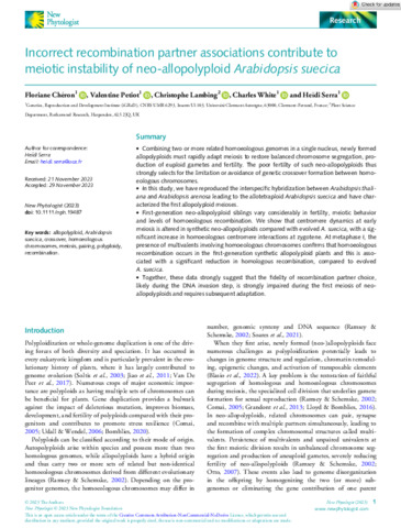 | Keywords | Arabidopsis suecica, Allopolyploid, Crossover, Homoeologous chromosomes, Meiosis, Pairing, Polyploidy, Recombination |