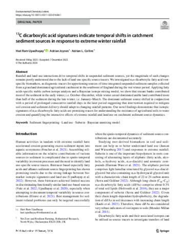 13C dicarboxylic acid signatures indicate temporal shifts in catchment sediment sources in response to extreme winter rainfall