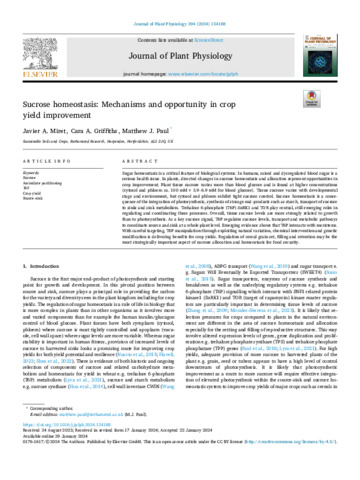 Sucrose homeostasis: Mechanisms and opportunity in crop yield improvement