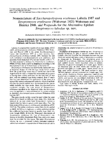 Nomenclature of Saccharopolyspora erythraea Labeda 1987 and Streptomyces erythraeus (Waksman 1923) Waksman and Henrici 1948, and proposals for the alternative epithet Streptomyces labedae sp. nov.