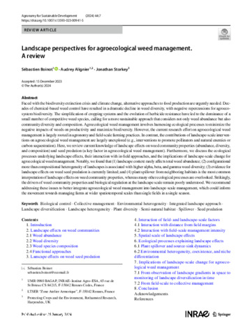 | Additional information | Funding La Fondation de France (DIVERSIT’HAIES project) fnancially supports the postdoctoral research of Sébastien Boinot. The contribution of Jonathan Storkey was funded by the Natural EnvironmentResearch Council (NERC) under research programme NE/W005050/1 AgZero+: Towards sustainable, climate-neutral farming. AgZero+ is an initiative jointly supported by NERC and the Biotechnology andBiological Sciences Research Council (BBSRC) UKRI grant NE/T000244/2. |