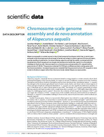 | Keywords | Genome, Alopecurus aequalis, Comparative genomics, Annotation |