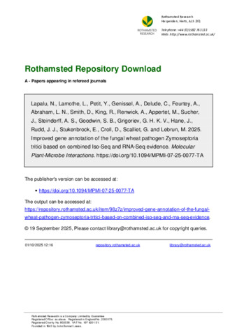 | Keywords | Isoforms, Transcripts, Genome annotation, Gene prediction, Septoria tritici blotch |
