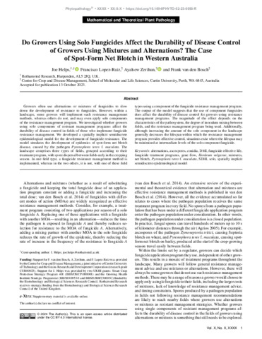 | Additional information | Funding: Support for F. van den Bosch, A. Zerihun, and F. Lopez-Ruiz was provided by the Centre for Crop and Disease Management, a joint initiative of Curtin University of Technology and the Grains Research and Development Corporation (research grant CUR00023). Support for J. Helps was provided by two UKRI grants: Smart Crop Protection Strategic Program 401 (BBS/OS/CP/000001) and the Growing Health Institute Strategic Programme (BB/X010953/1 and BBS/E/RH/230003C) funded by the Biotechnology and Biological Sciences Research Council. Rothamsted Research receives strategic funding from the Biotechnology and Biological Sciences Research Council of the United Kingdom. |