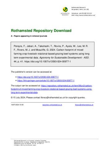 Carbon footprint of mixed farming crop-livestock rotational-based grazing beef systems using long term experimental data