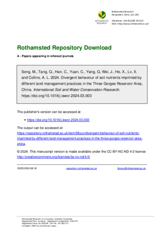 Divergent behaviour of soil nutrients imprinted by different land management practices in the Three Gorges Reservoir Area, China