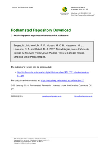 Metodologias para o Estudo da Defesa de Memoria (Priming) em Plantas Frente a Estresse Biotico