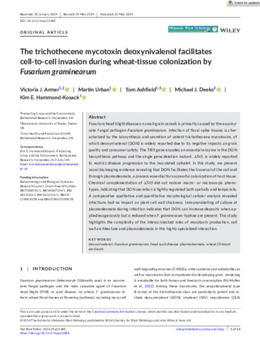 The trichothecene mycotoxin deoxynivalenol facilitates cell-to-cell invasion during wheat-tissue colonization by Fusarium graminearum