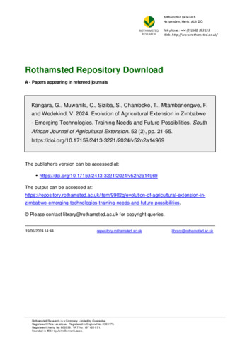 Evolution of Agricultural Extension in Zimbabwe - Emerging Technologies, Training Needs and Future Possibilities