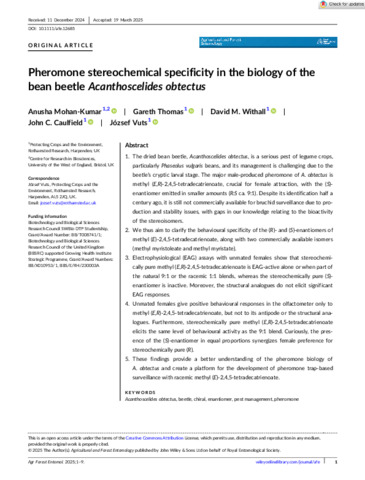 Pheromone stereochemical specificity in the biology of the bean beetle Acanthoscelides obtectus