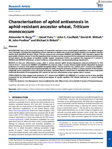Characterisation of aphid antixenosis in aphid-resistant ancestor wheat, Triticum monococcum