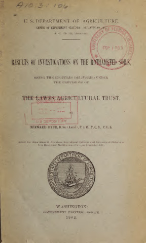Results of investigations on the Rothamsted soils, being the lectures delivered under the provisions of the Lawes agricultural trust