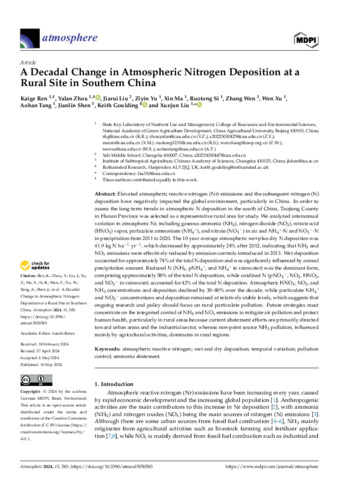 | Keywords | Atmospheric reactive nitrogen, Ammonia abatement, Temporal variation, Pollution control, Wet and dry deposition |