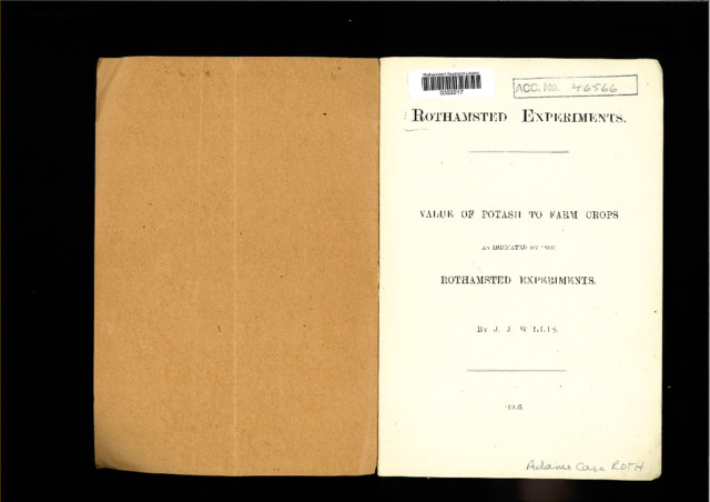 Value of potash to farm crops as indicated by the Rothamsted Experiments.