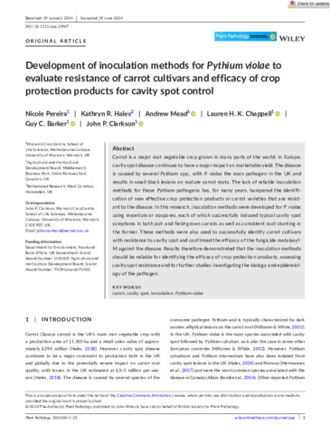 Development of inoculation methods for Pythium violae to evaluate resistance of carrot cultivars and efficacy of crop protection products for cavity spot control