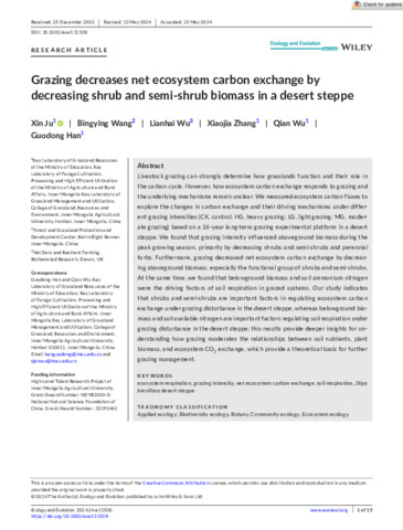 Grazing decreases net ecosystem carbon exchange by decreasing shrub and semi-shrub biomass in a desert steppe