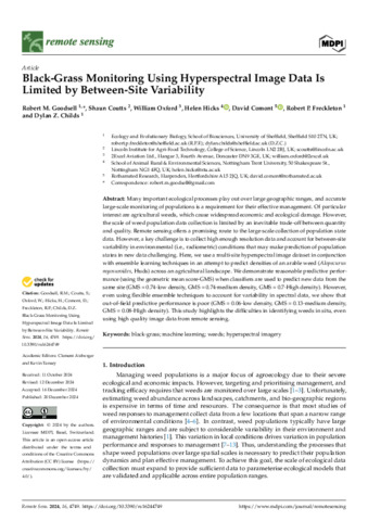 | Keywords | Alopecurus myosuroides, Black-grass, Machine learning , Weeds, Hyperspectral imagery |
