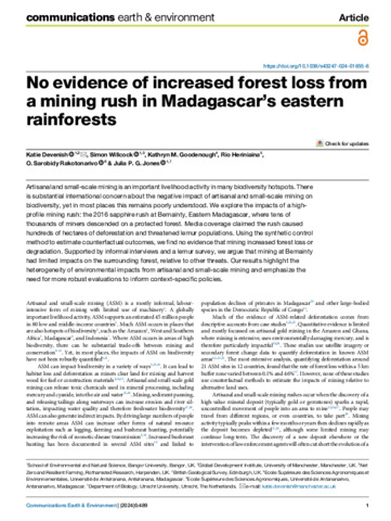 No evidence of increased forest loss from a mining rush in Madagascar's eastern rainforests