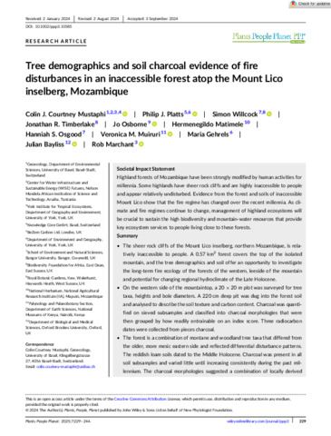 Tree demographics and soil charcoal evidence of fire disturbances in an inaccessible forest atop the Mount Lico inselberg, Mozambique
