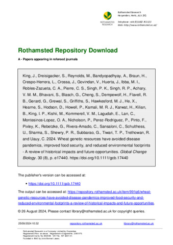 Wheat genetic resources have avoided disease pandemics, improved food security, and reduced environmental footprints: A review of historical impacts and future opportunities
