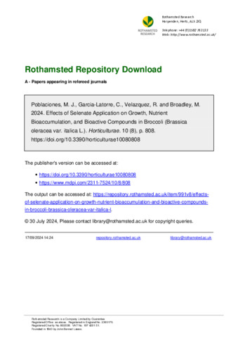 | Additional information | This article belongs to the Section Vegetable Production Systems Supporting information can be downloaded at: https://www.mdpi.com/article/10.3390/horticulturae10080808/s1 Financial support was provided by the Ministry of Science, Education and Universities of Spain (Program: Salvador de Madariaga, PRX22/00335) for Poblaciones’s stay in the Sustainable Soils and Crops Strategic Area at Rothamsted Research (UK). |