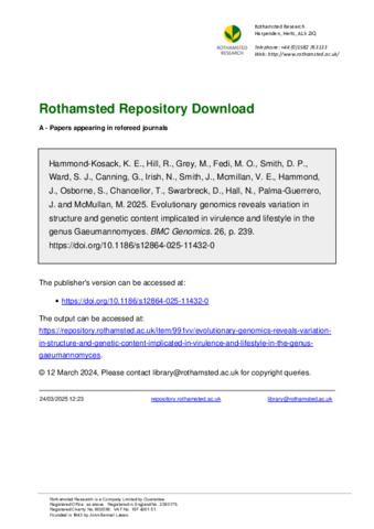 | Project | BB/CCG1720/1, Designing Future Wheat (DFW) [ISPG], Delivering Sustainable Wheat, BBS/E/ER/230003B, Delivering Sustainable Wheat (WP2): Delivering Resilience to Biotic Stress, BBS/E/T/000PR9816, BBS/E/ER/23NB0006, BBX011089/1, BBS/E/ER/230002B, BB/CCG2280/1, Nottingham-Rothamsted Doctoral Training Partnership |