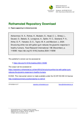 | Keywords | Blood glucose, Low acyl gellan gum, Jasmine rice, Magnetic resonance imaging, MRI, White rice |