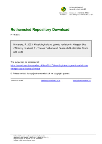 Physiological and genetic variation in Nitrogen Use Efficiency of wheat