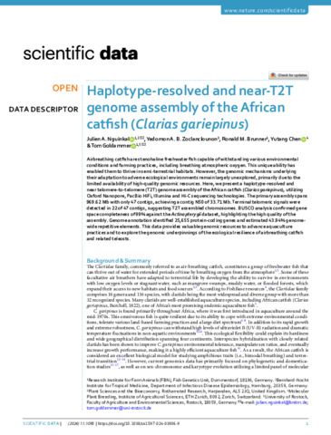 Haplotype-resolved and near-T2T genome assembly of the African catfish (Clarias gariepinus)