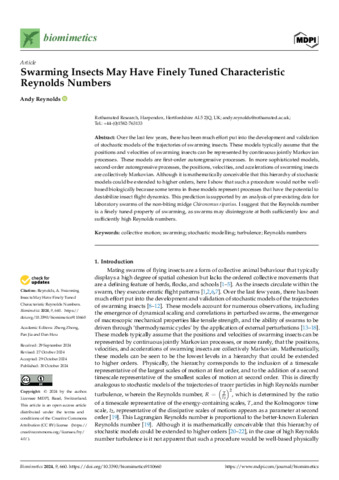 | Keywords | Collective motion, Reynolds numbers, Turbulence, Stochastic modelling, Swarming |