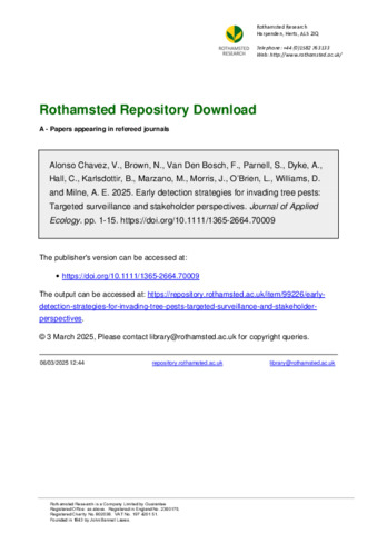| Additional information | Was titled - Strategies for the early detection of Emerald Ash Borer (Agrilus planipennis) in Great Britain: targeted surveillance and stakeholder perspectives |