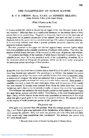 1. An analysis has been made of the numbers and location of adult female Sarcoptes scabiei found on 886 men suffering from scabies