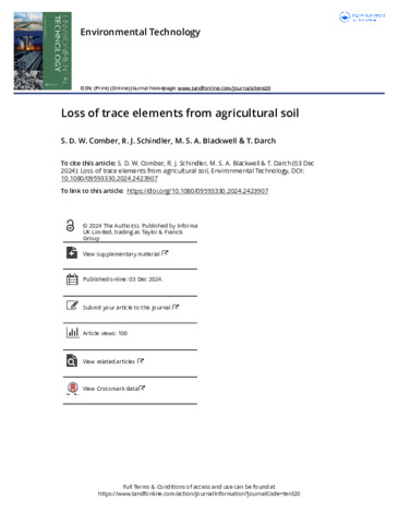 | Keywords | Trace elements, Agricultural soil, Leaching, Erosion, Partitioning, Long-term experiment |