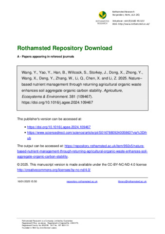 | Keywords | Straw incorporation, Carbon decomposition, Enzymatic activity, Aggregate organic carbon stability |