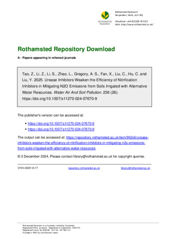 | Keywords | Inhibitor, Soil, Nitrous oxide, Livestock wastewater, Reclaimed water |